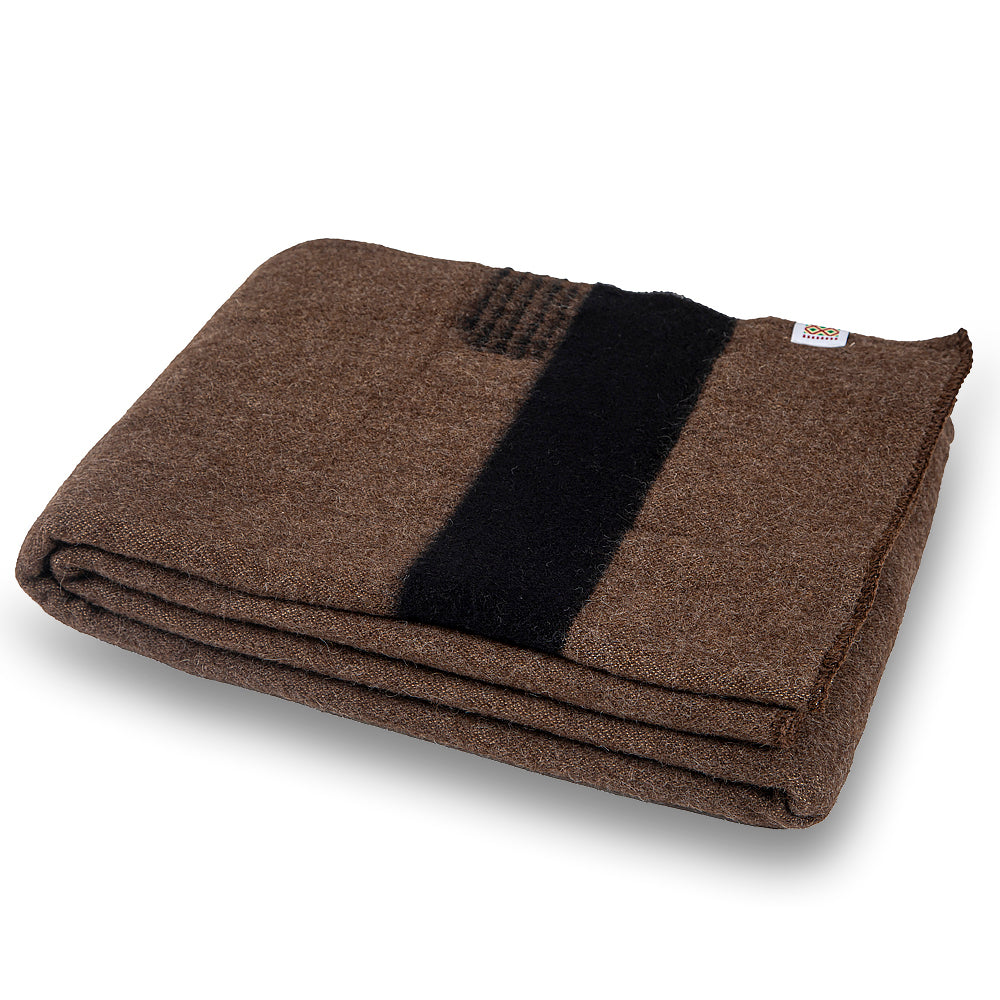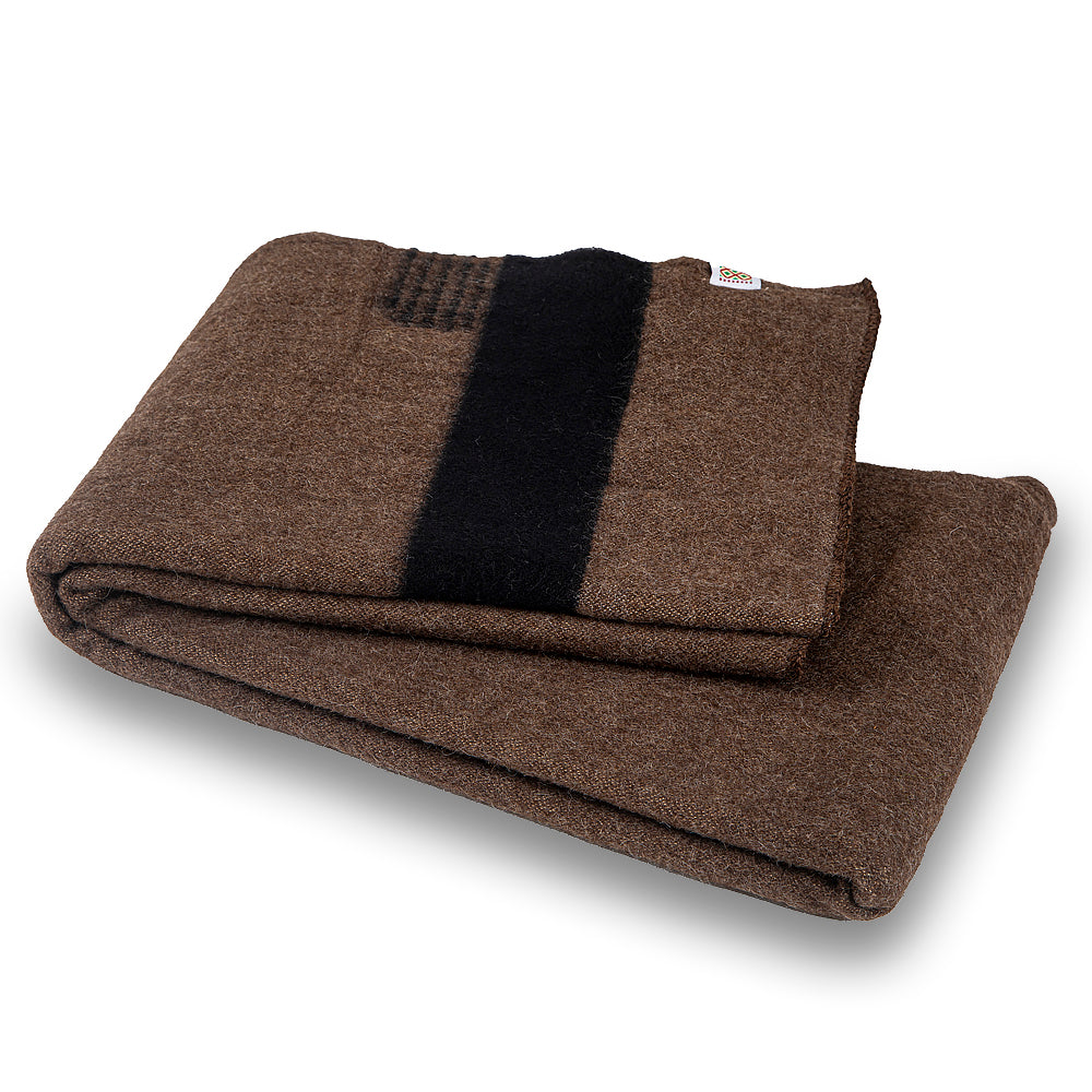 Thick wool blanket Rainbow XVIII - brown with one black stripe on both ends