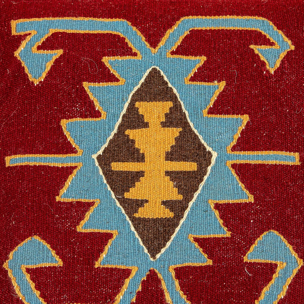 Krásný vzor ve zcela přírodním provedení, tzn. barvený jen přírodními barvivy, ač to tak na první pohled nemusí vypadat, že? Jde o polštářek, který můžete použít jako nádherný dekorativní prvek ve Vašem interiéru. Byl utkán v asijské části Turecka. Jeden z tradičních místních vzorů. K tomuto polštářku máme i kilim se stejným jménem, podívejte se... Lícová strana je ručně tkaný kilim, rubová pevné bavlněné plátno.