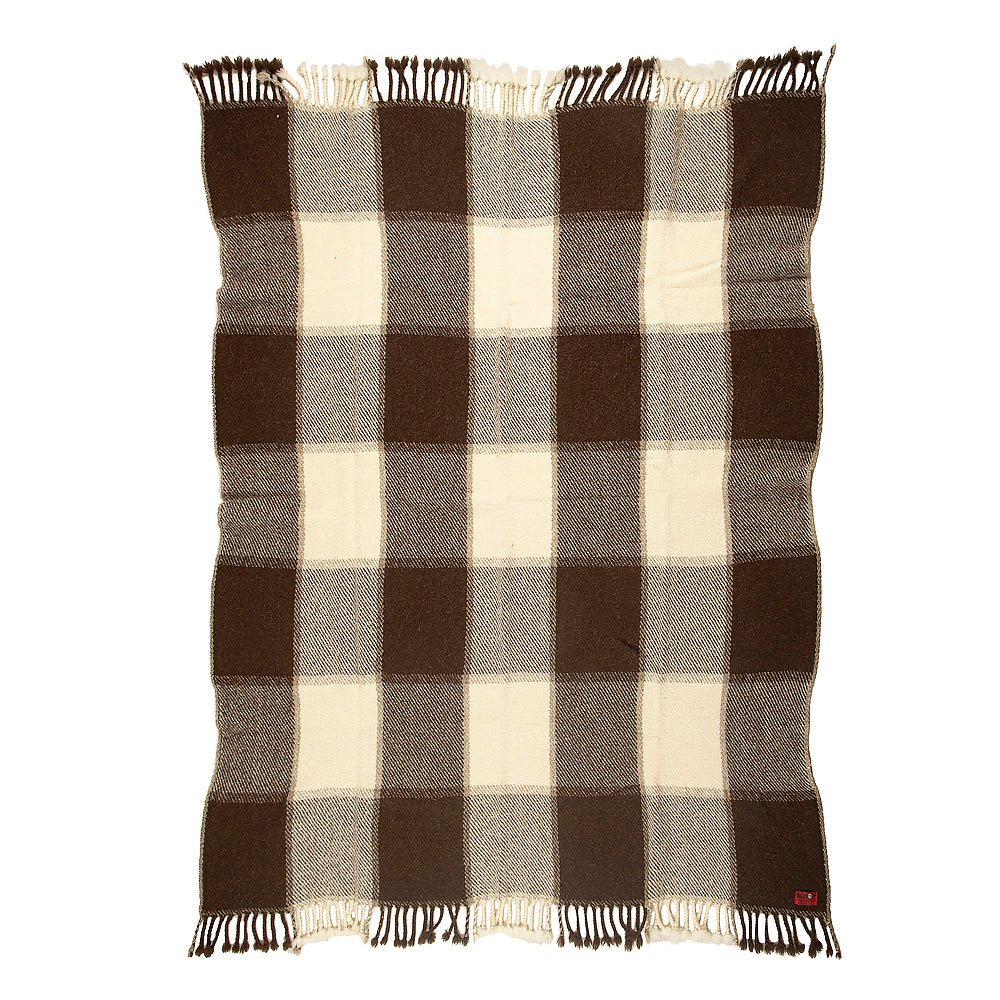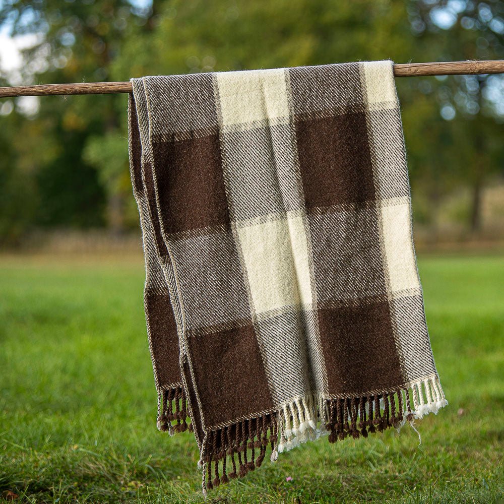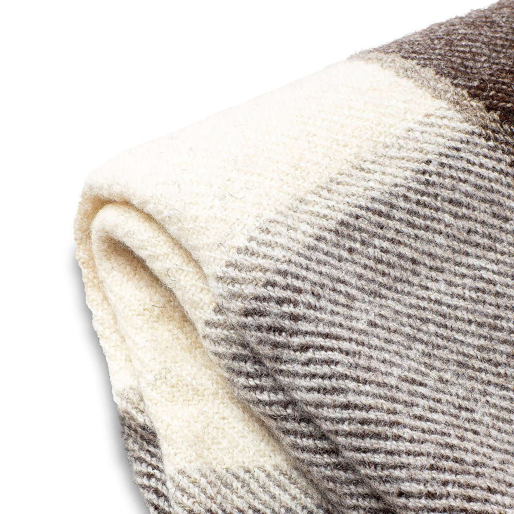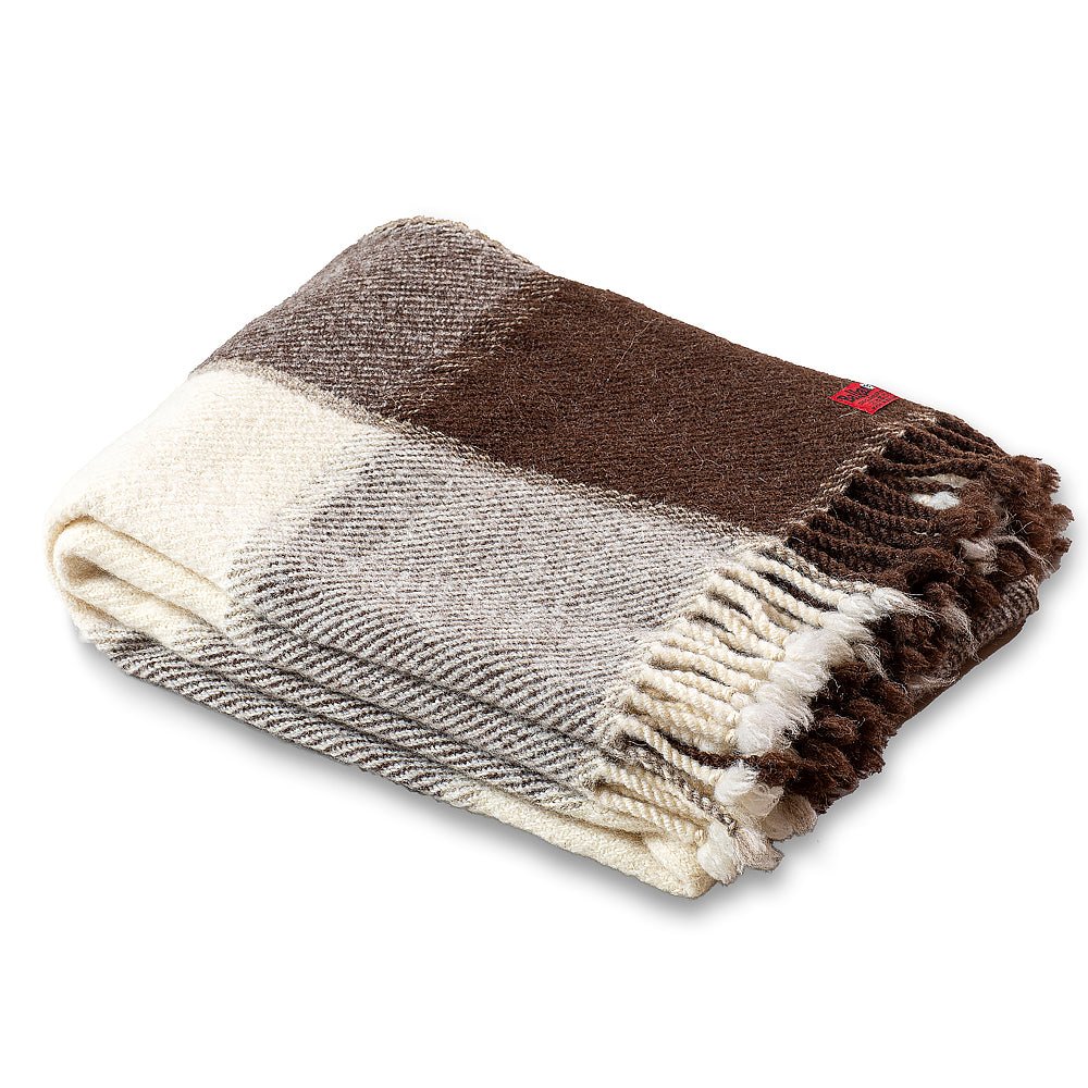 Vlněná deka Perelika XI - přírodní nebarvená bílá a hnědá vlna (velké kostky)