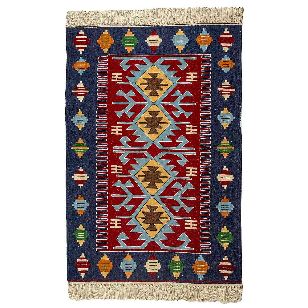 traditional hand made wool kilim blue pink green - Balkanova