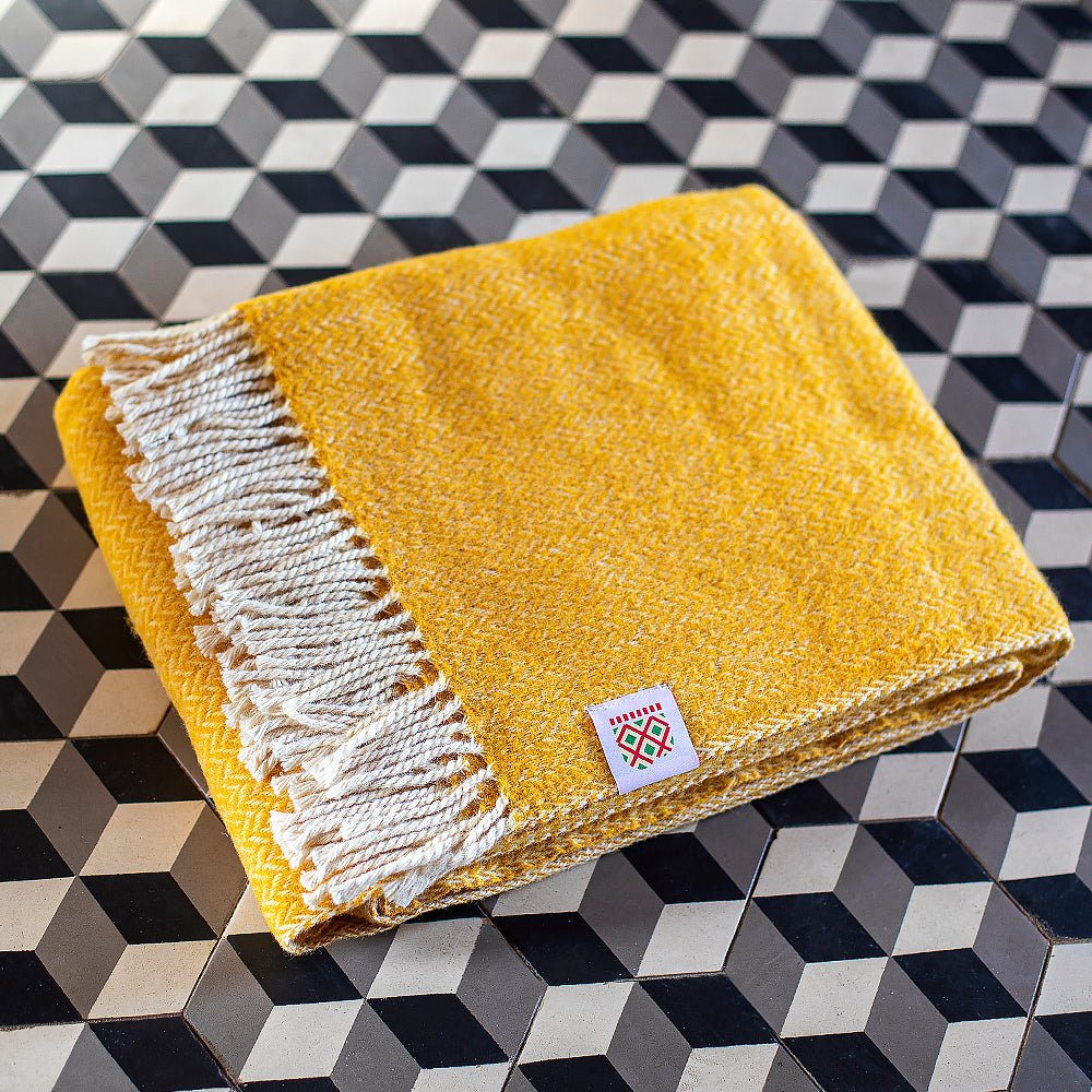 Vlněná deka Elma I - hořčičně žlutá VELKÁ