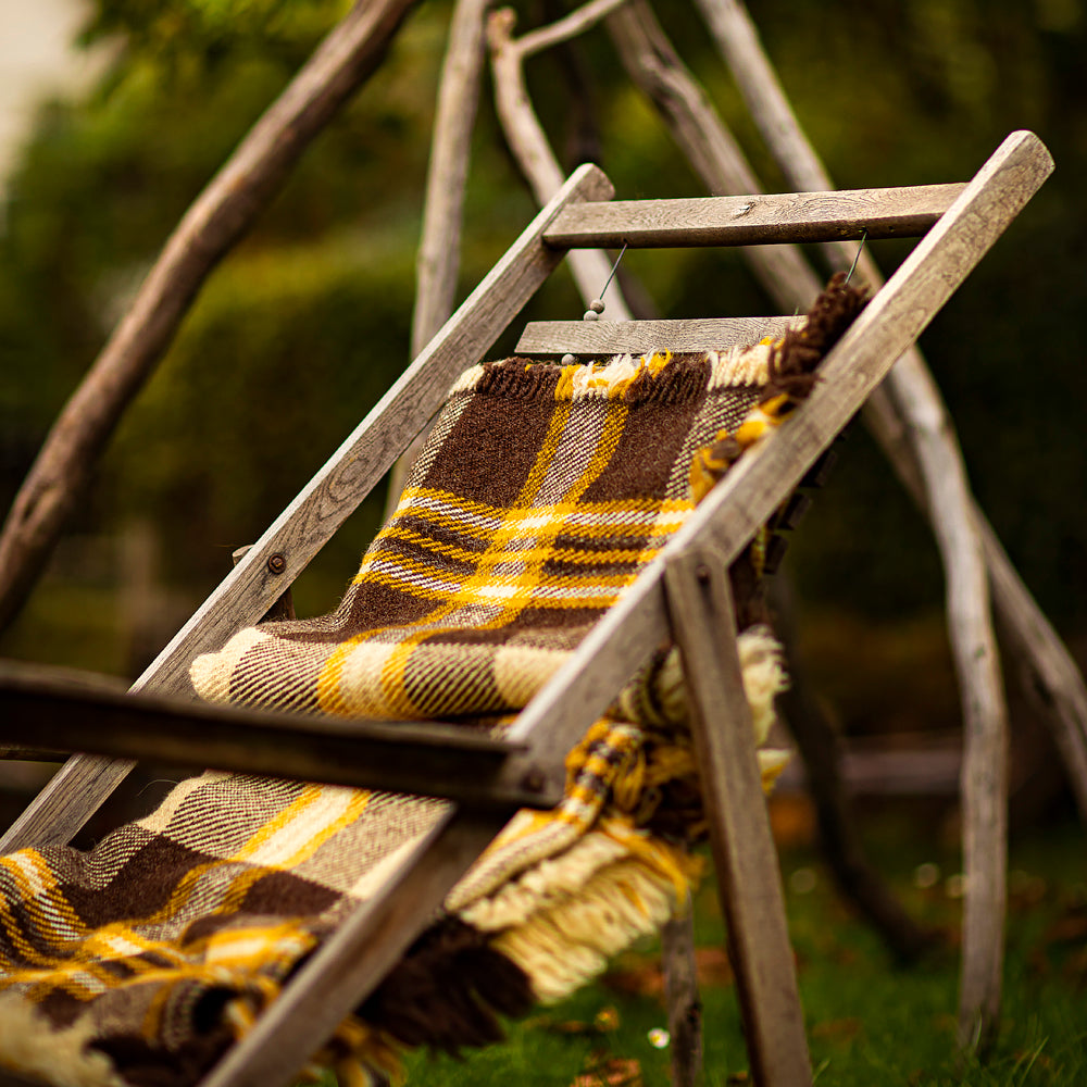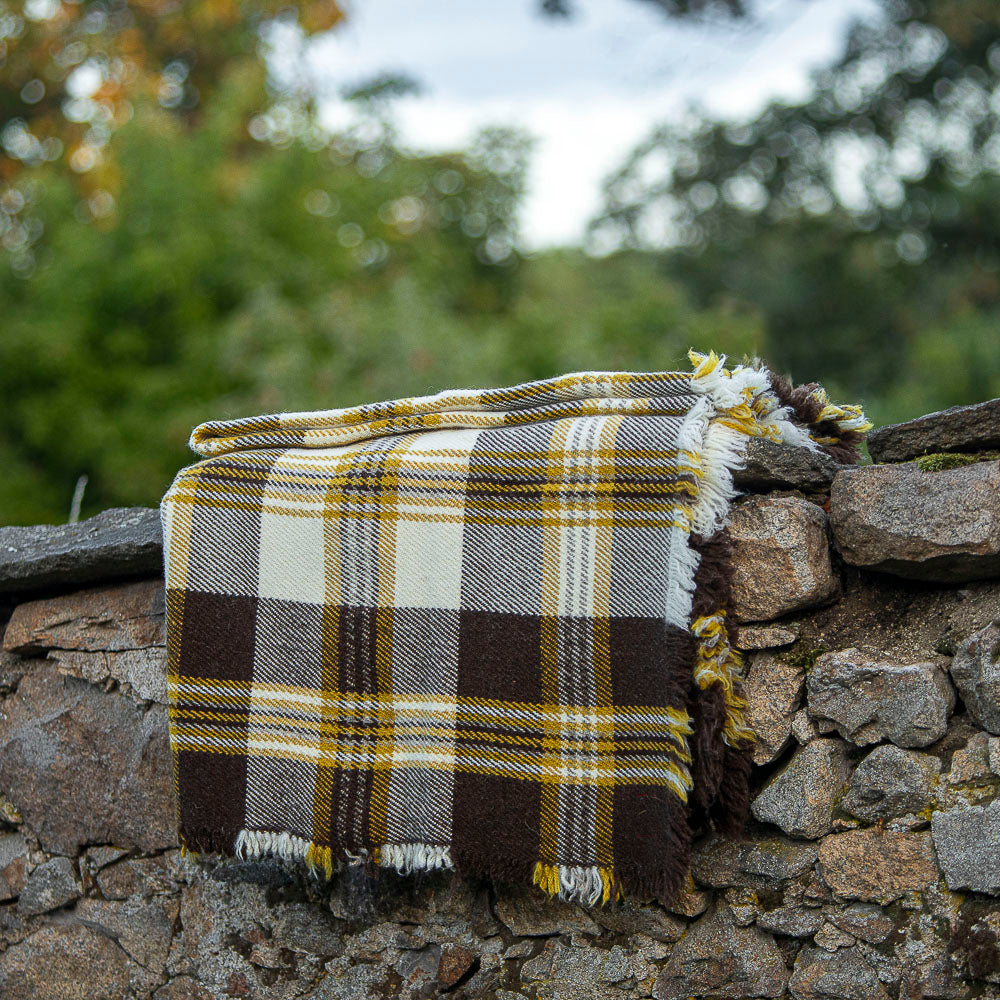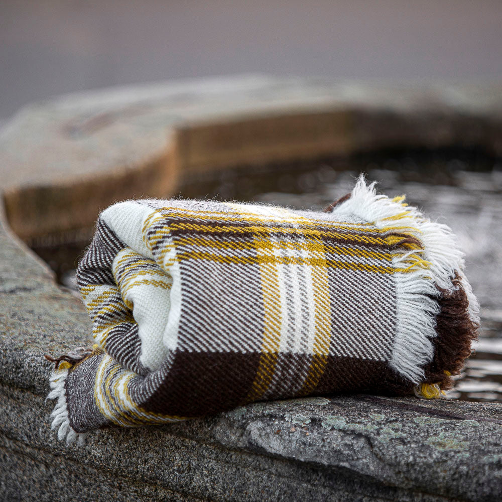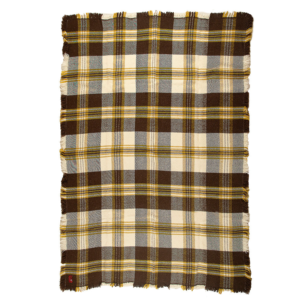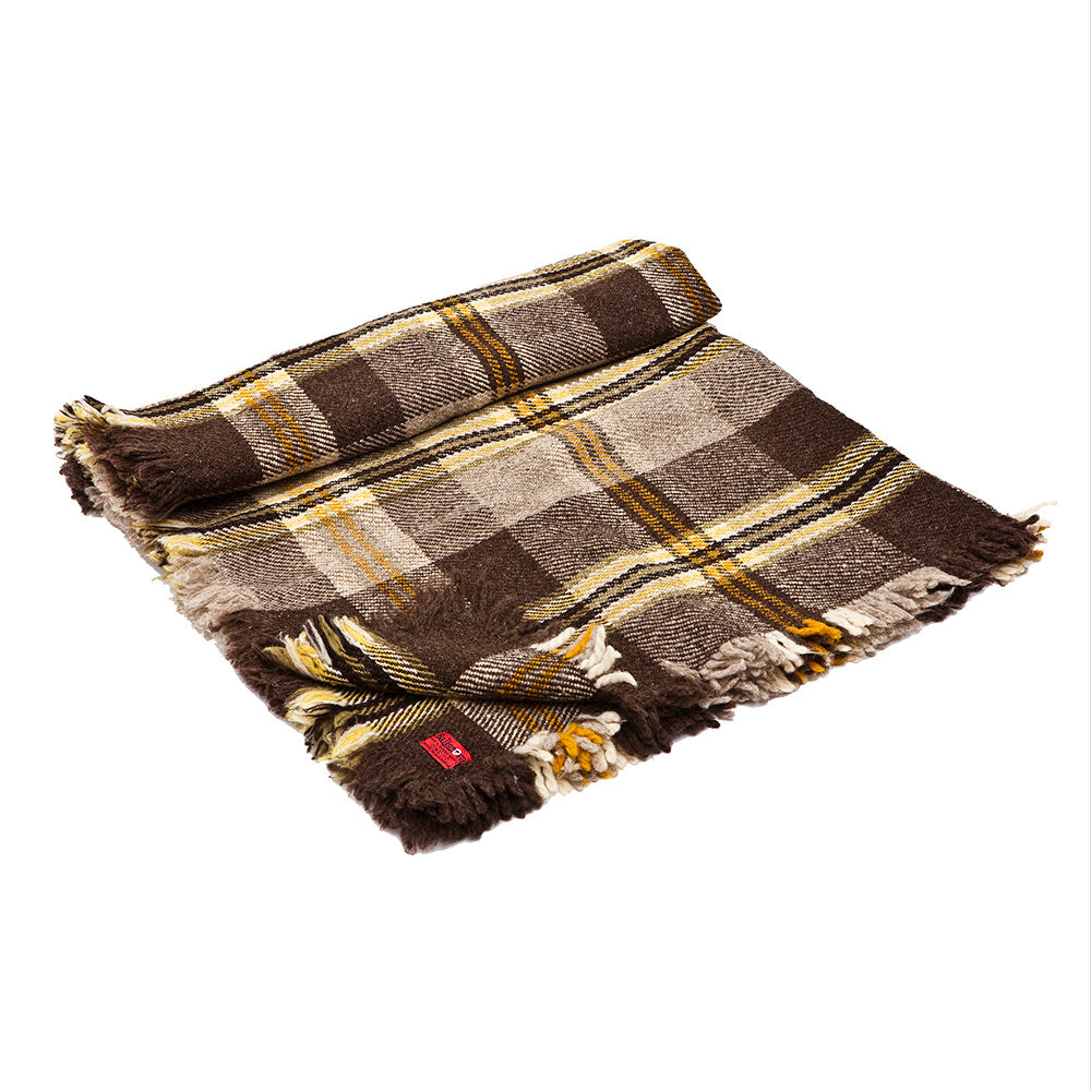 Klasická vlněná deka Rodopa X - hnědá se žlutým pruhem