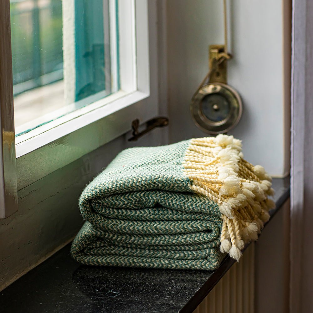 Wolldecke Marina Merino - blau grünes Meer