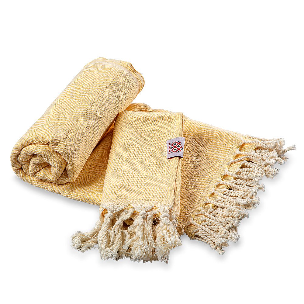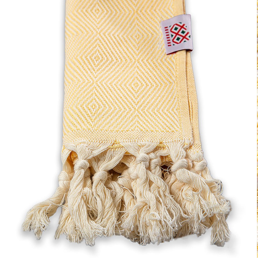 Σας παρουσιάζουμε το νέο μας σετ πετσετών με μοτίβο διαμαντιού σε κίτρινο χρώμα. Το σετ περιλαμβάνει μια βαμβακερή πετσέτα μπάνιου και μια πετσέτα . Στεγνώνουν γρήγορα και είναι ο τέλειος αντικαταστάτης των παραδοσιακών πετσετών. Είναι επίσης ιδανικές για ταξίδια, καθώς καταλαμβάνουν ελάχιστο χώρο στις αποσκευές σας. Είναι ιδανικές για την παραλία, τη σάουνα ή οπουδήποτε αλλού. Και αυτό που είναι πραγματικά συναρπαστικό, και τα δύο αυτά κομμάτια υφαίνονται στο χέρι στην Τουρκία σε μια περιοχή κοντά στο Denizli χρησιμοποιώντας τοπικό βαμβάκι, γεγονός που εγγυάται την ποιότητα και τη μοναδικότητά τους. Επιπλέον, προσφέρουμε 5 χρόνια εγγύηση με αυτά τα προϊόντα! Το προϊόν αποτελεί αναπόσπαστο μέρος του τουρκικού παραδοσιακού νοικοκυριού. Είναι γνωστό ως peshtemal, τουρκικά peştemal (διαβάστε peshtemal) και χρησιμοποιείται κατά την επίσκεψη σε τουρκικά χαμάμ και άλλα παρόμοια. Στις δικές μας γεωγραφικές συνθήκες, μπορεί να χρησιμοποιηθεί στη σάουνα, σε ένα σπα ή ως πετσέτα ταξιδιού.
