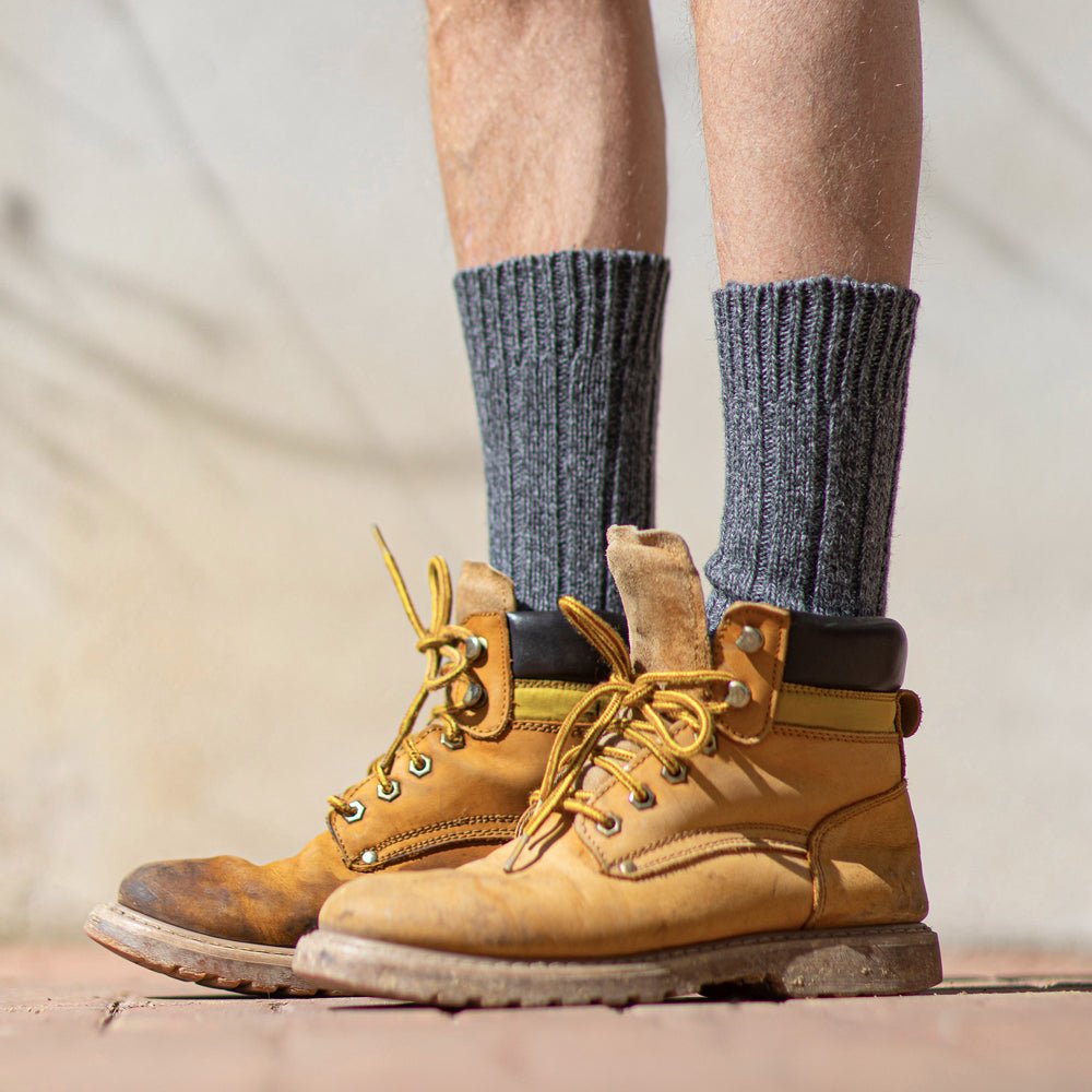 Κάλτσες μάλλινες 100% μαλλί, χοντρή ελαστική πλέξη - σκούρο γκρι