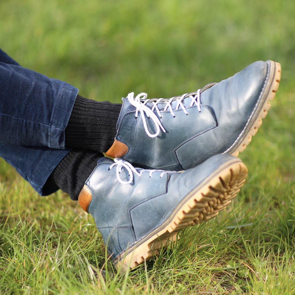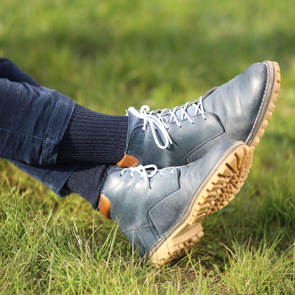 Ανδρικές μάλλινες κάλτσες με πλέξη υγείας. Αυτό σημαίνει ότι υπάρχουν λιγότερες ελαστικές ταινίες στο άνω άκρο της κάλτσας από ό,τι συνήθως, ώστε η κάλτσα να μην τσαλακώνεται τόσο πολύ. Επομένως, είναι πιο χαλαρή στο άνω άκρο του στρίφωματός της. Αυτό εκτιμάται ιδιαίτερα από άτομα με προβληματική κυκλοφορία του αίματος ή που πάσχουν από κιρσούς.