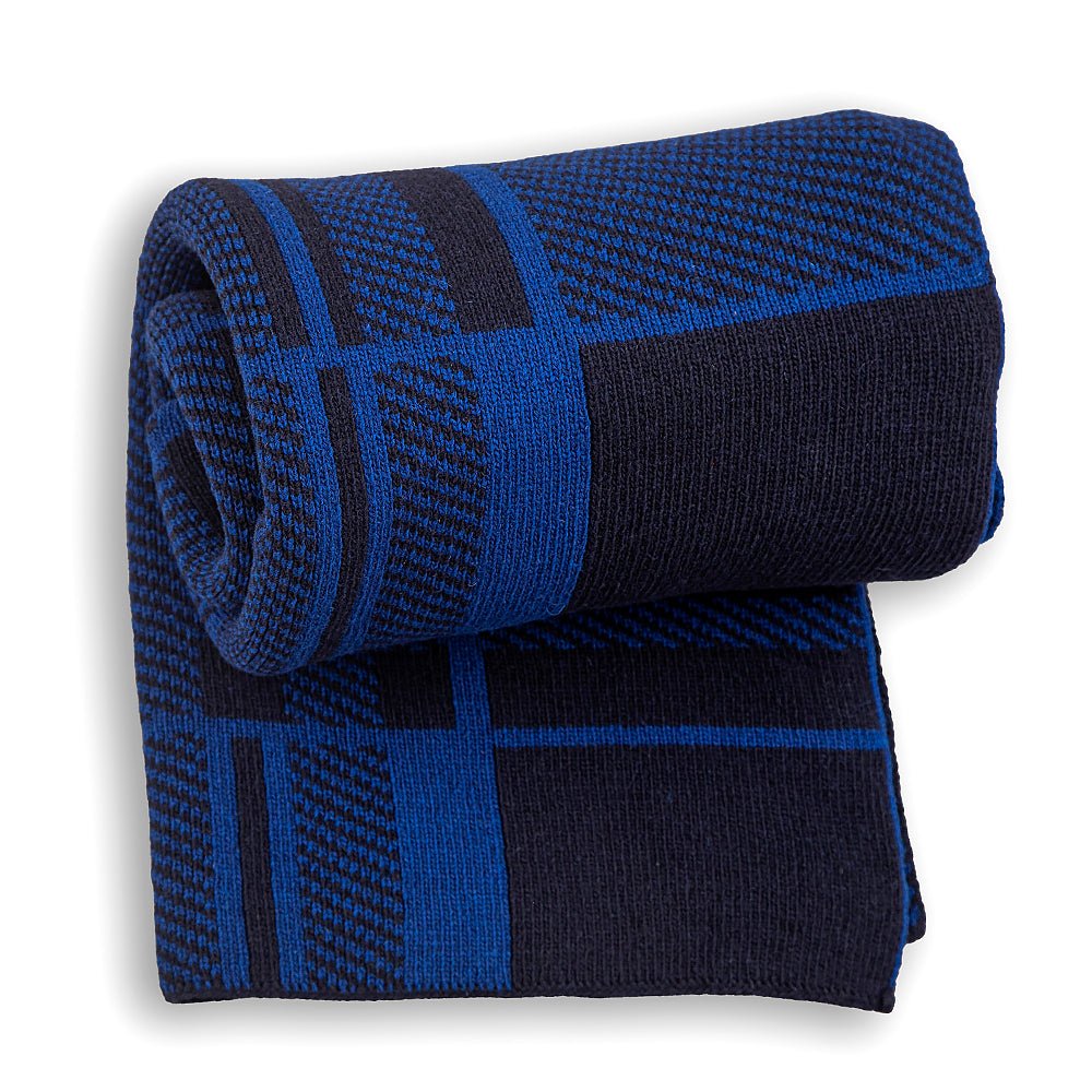 Μαλλί κασκόλ σε ανάποδο ανοιχτό και σκούρο μπλε, με κλασικό μοτίβο της Ροδόπης. Τι είναι αυτό; Ρίξτε μια ματιά στις κουβέρτες μας Rodopa και θα μάθετε. Ένα καρό μοτίβο που είναι χαρακτηριστικό των βουνών της Ροδόπης και της παραγωγής υφασμάτων. Η σχεδιάστρια κλωστοϋφαντουργίας Gergana Stankova, η οποία σχεδίασε αυτό το σάλι για την Balkanova, στην πραγματικότητα τροποποίησε μόνο ελαφρώς το μοτίβο της Ροδόπης για τη μικρότερη κλίμακα του κασκόλ. Το κασκόλ είναι κατασκευασμένο από μαλλί μερίνο (80%) και πολυαμίδιο (20%). Αυτό το καθιστά πολύ μαλακό και ευχάριστο στην αφή και πραγματικά υπέροχο στη χρήση.