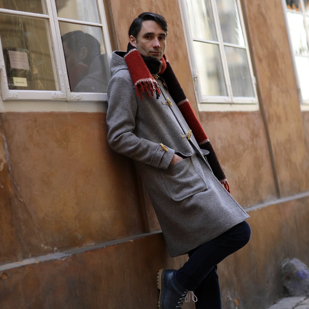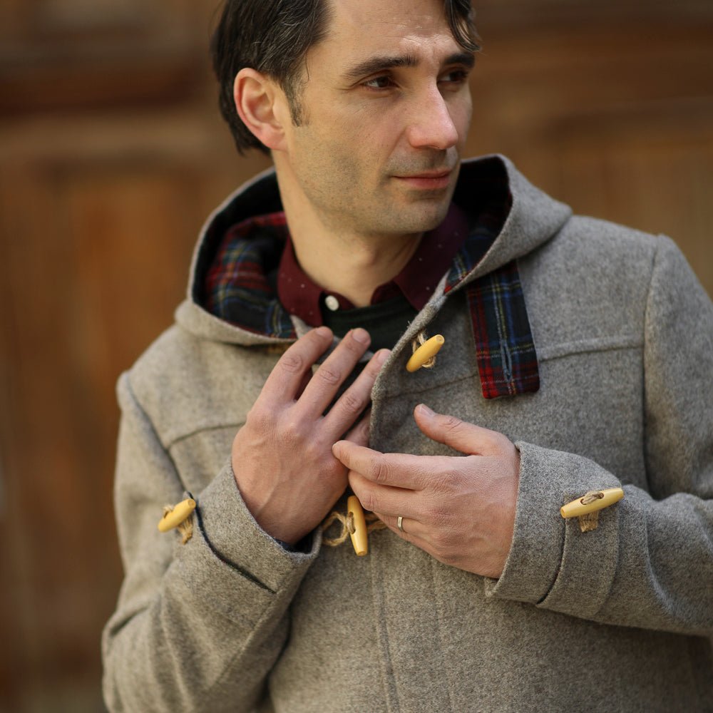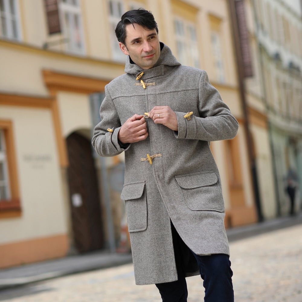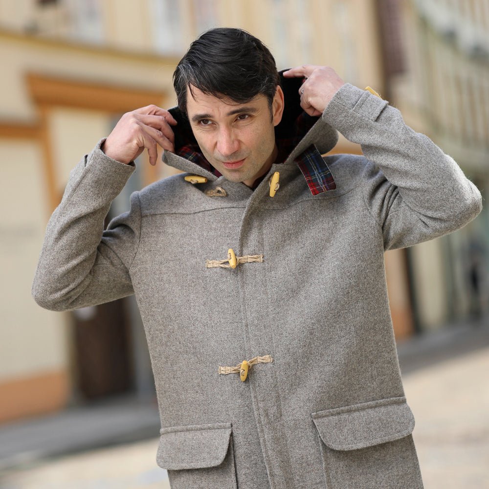 A classic British coat, an essential part of the island's outfit, this is the honest Montgomery coat we offer you. Originally a coat worn by members of the Royal Navy for its moisture resistance and ease of fastening. Made famous by Field Marshal Bernard Montgomery. The coat, also known as a duffle coat, is the result of a collaboration between Balkanova and Vlnolen tailoring. The cloth is made from our Marica fabric in a pleasant grey shade. The fabric on the inside of the hood is Karadere, also 100% wool. According to the simple sketch in the gallery, take your measurements and write them in the notes in the order 1-5. Send your order. Your coat will be ready within three weeks of ordering! We will send it to you free of charge via Packeta (Zásilkovna) or to the home address that you choose in your order!