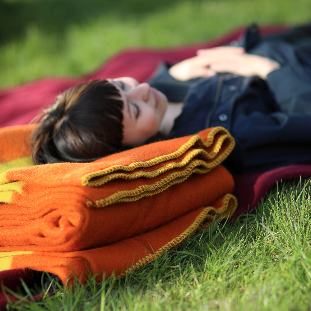 For the Rainbow line of blankets, please note that the dimensions of the blanket are approximate and the actual size may vary by 3%. This is due to the method of production of this blanket, where the last technological step is a water bath during which the blankets are shrunk to the desired size. However, it is not possible to predict the behaviour of the wool in the water bath with 100% accuracy and therefore the difference shown may occur.