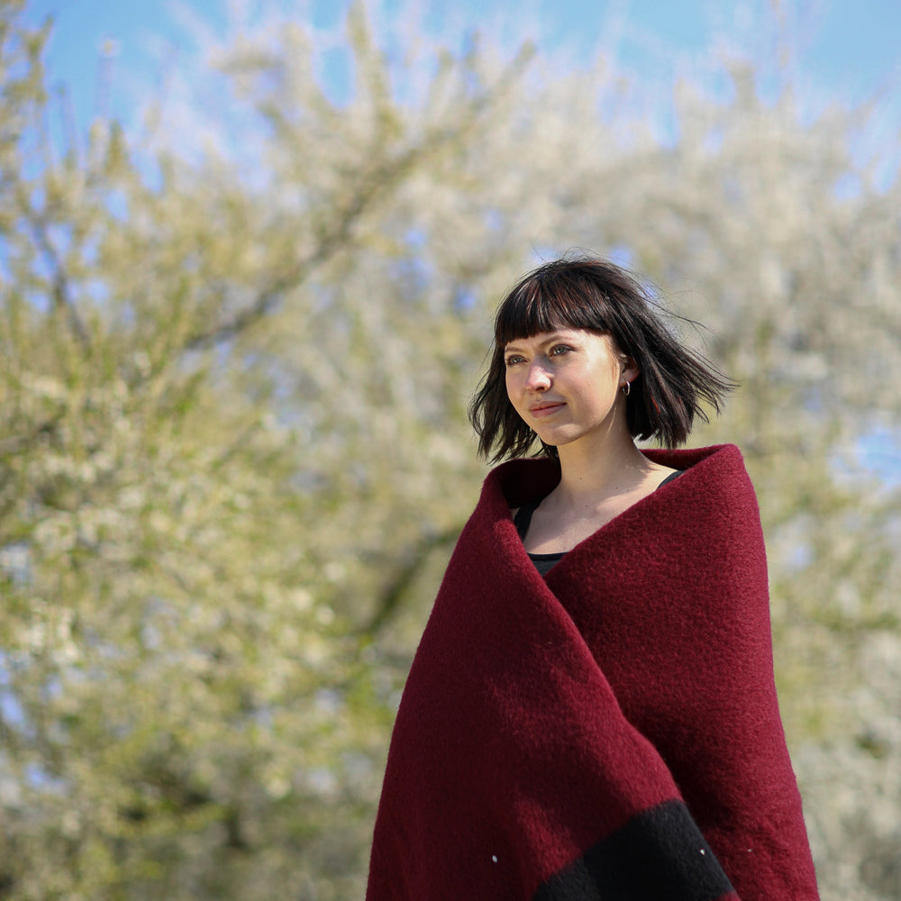Thick wool blanket Rainbow III - burgundy with black stripe on both ends