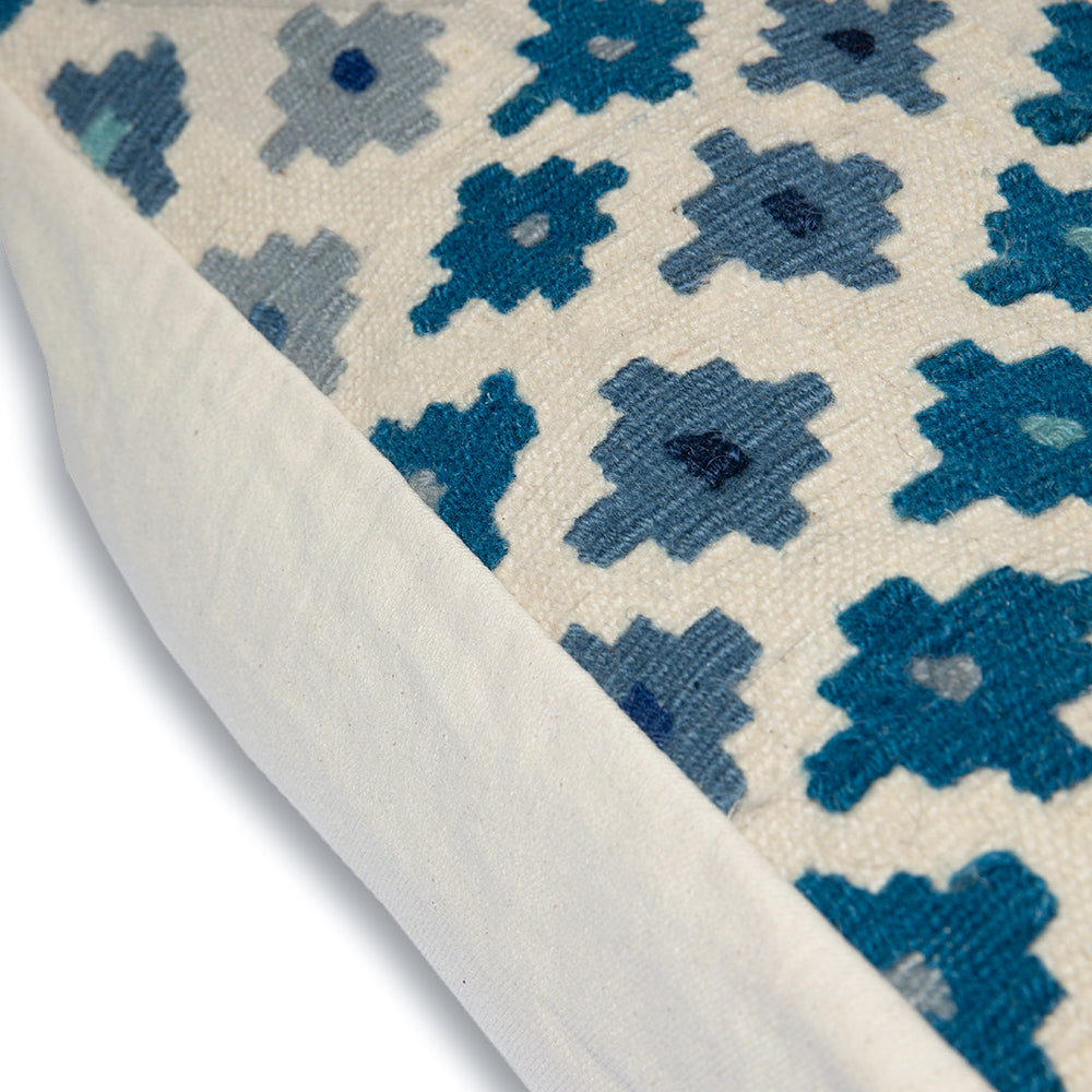 Tento krásny vankúš patrí k rovnomennému kilimu. Vankúš má prednú stranu vyrobenú technikou tkania kilim, pevné bavlnené plátno na zadnej strane a otvor na vnútornú výplň. Tá nie je súčasťou vankúša.