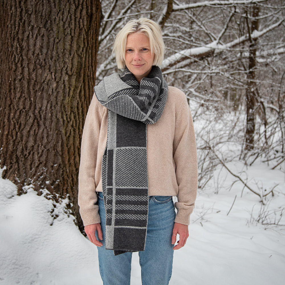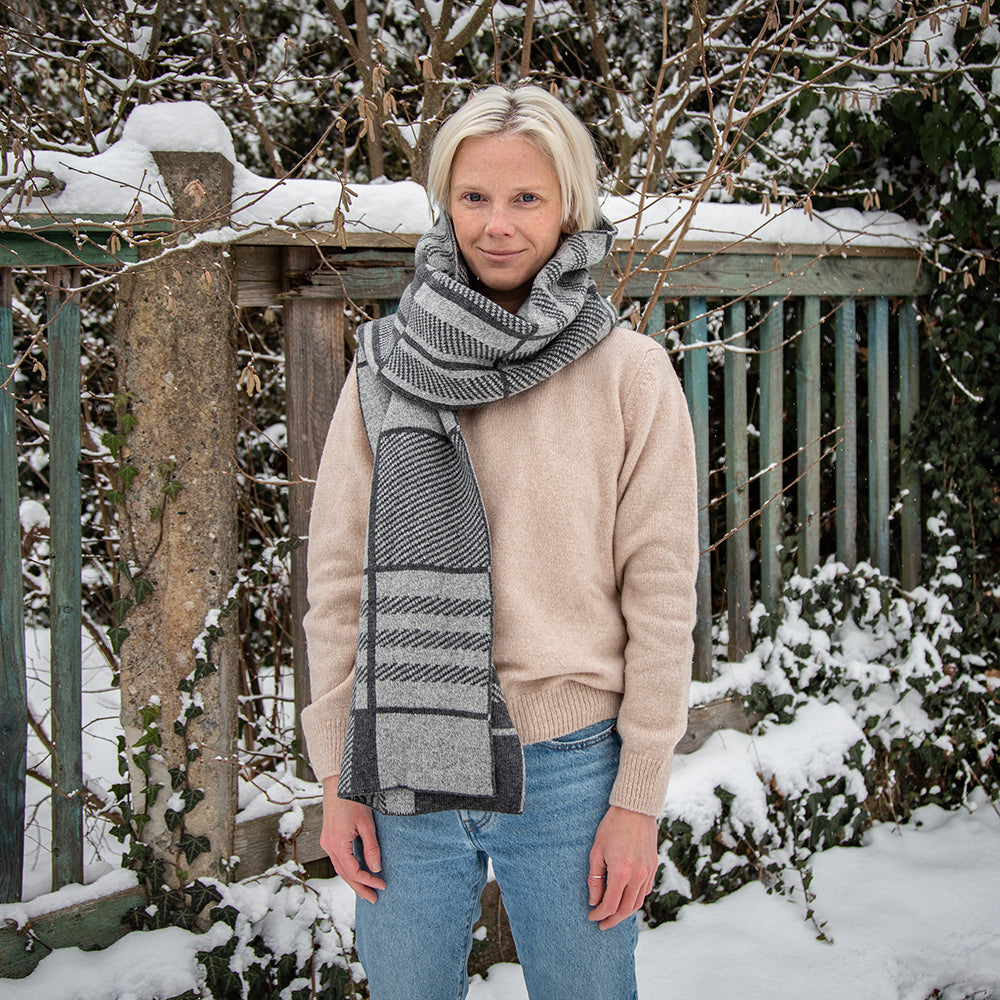 Wool scarf "Rodopa" - light and dark grey merino-Balkanova